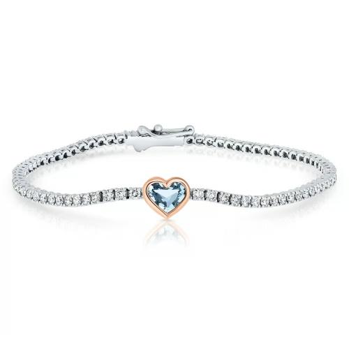 Beautiful 5.69ct heart-shaped aquamarine with a strand of white brilliant round diamonds totaling 3.29ct in white gold.