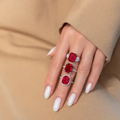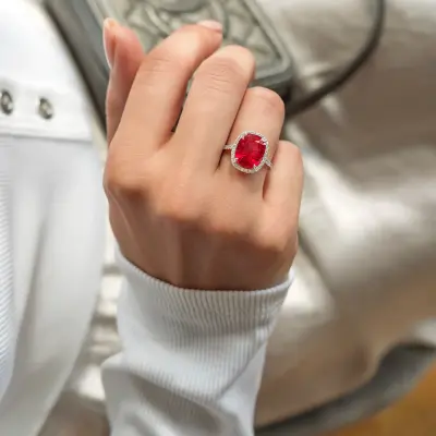 - ✔️ Stunning cushion-cut lab-created red ruby