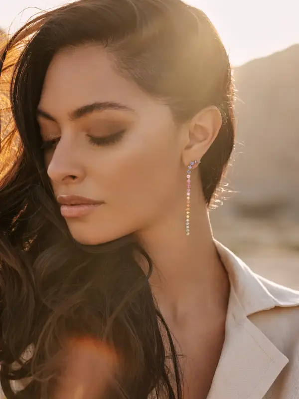 A celebration of light, joy, and individuality, the Rainbow Long Earrings by MoujahidJewels are crafted in 24K rose gold and adorned with a vertical cascade of natural, untreated rainbow sapphires. Their elongated silhouette adds graceful movement, while the color gradient evokes emotional depth and radiant presence.