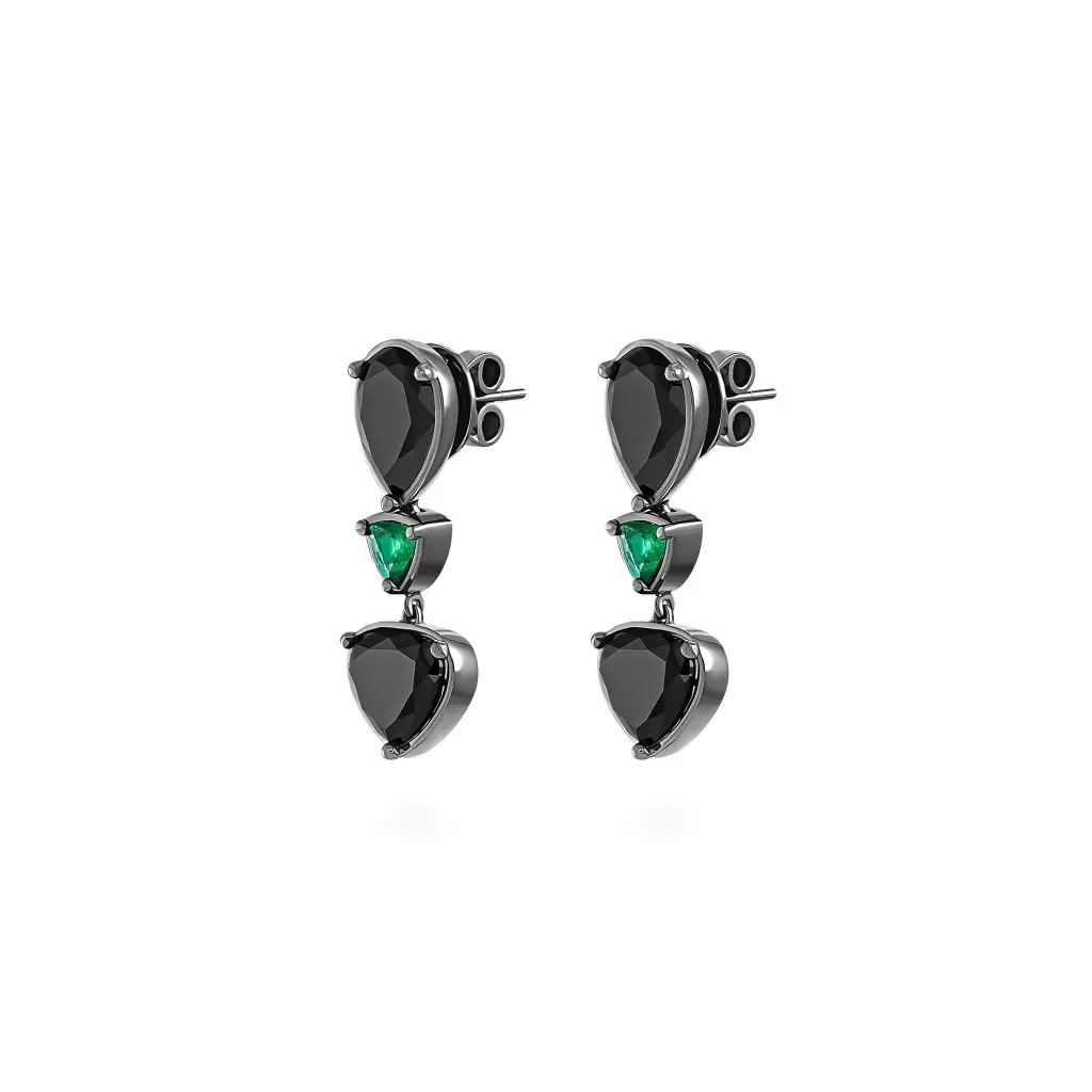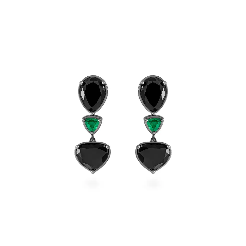 Celebrating a decade of bold refinement, MoujahidJewels introduces these exclusive earrings from the 2024 Haute Collection Anniversary Edition. Crafted in 24K black gold, they feature a dramatic pairing of two 7.20ct black diamonds (14.40ct total) flanking a vivid 1ct emerald center — a fusion of mystery and majesty.