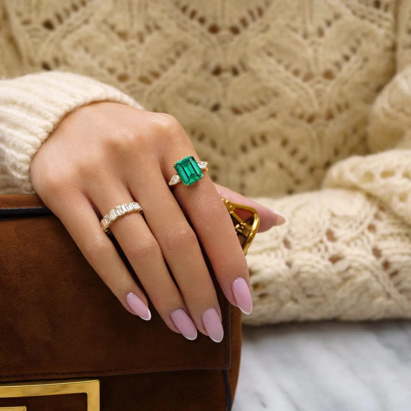 - ✔️ Emerald-cut lab-created green emerald center